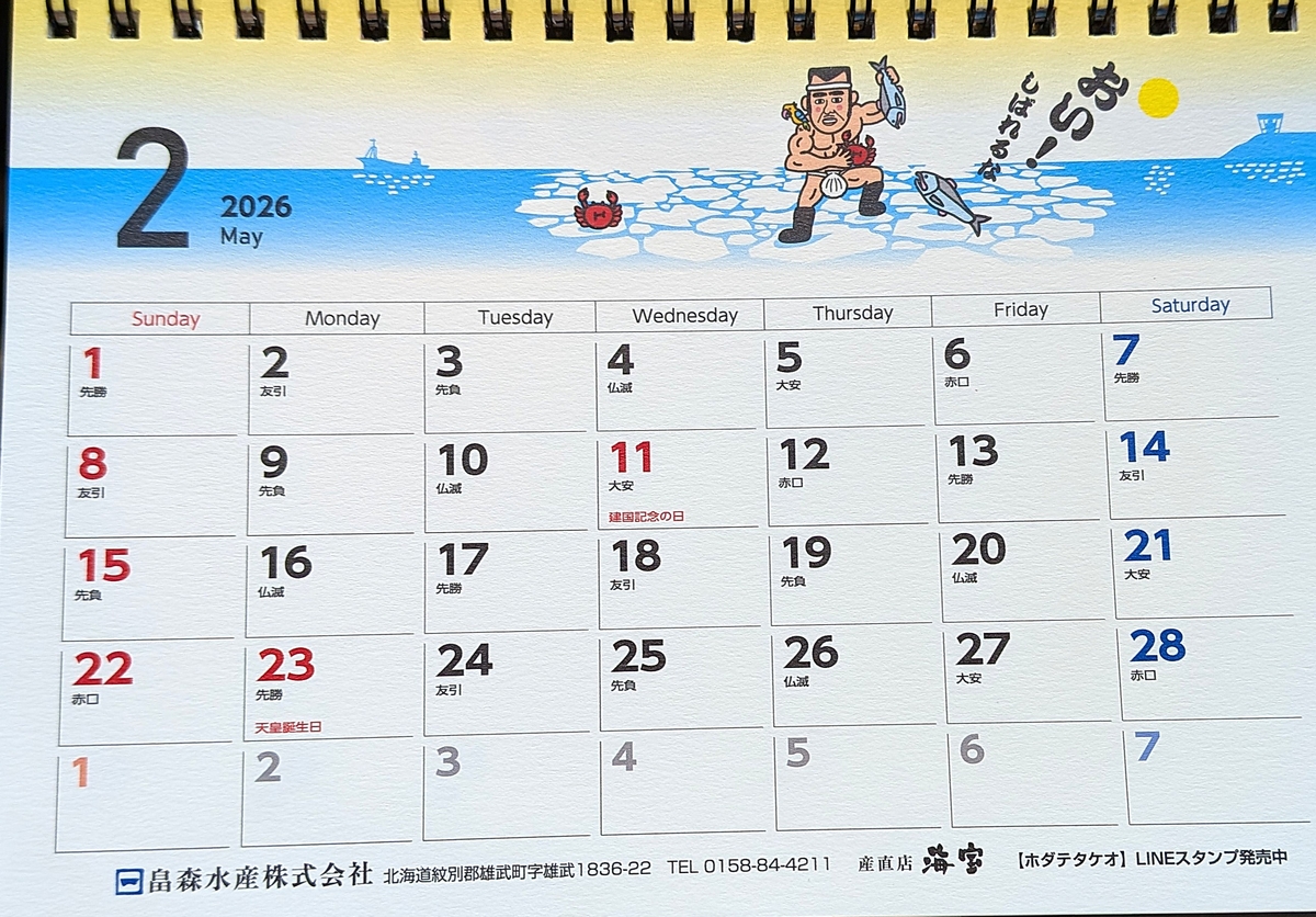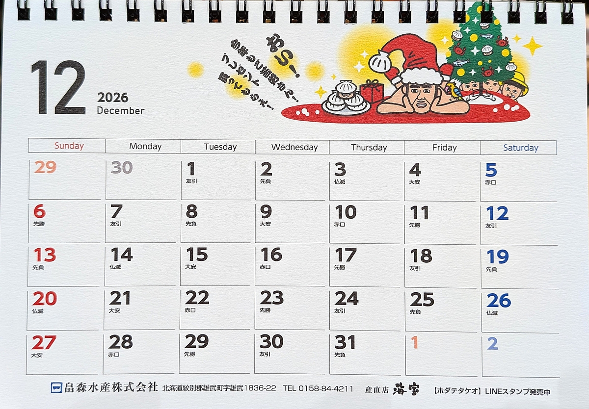 畠森水産オリジナルキャラクター【帆館 武雄】の卓上カレンダー。